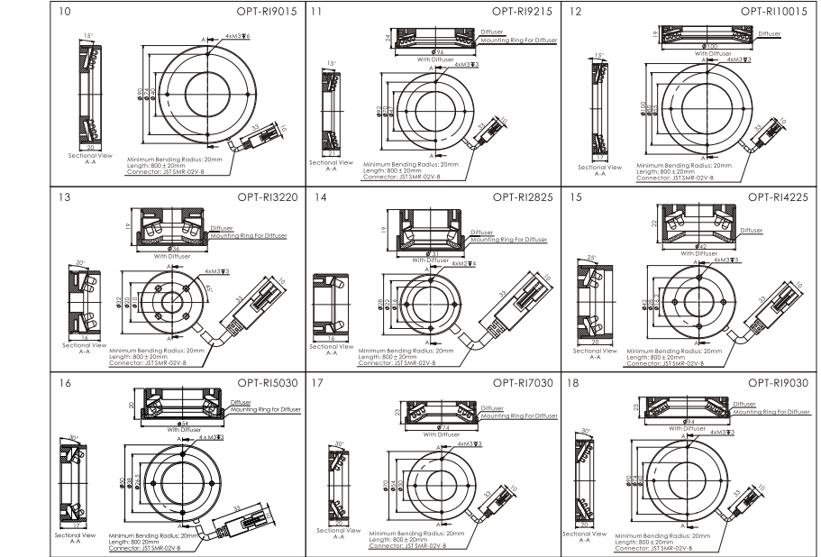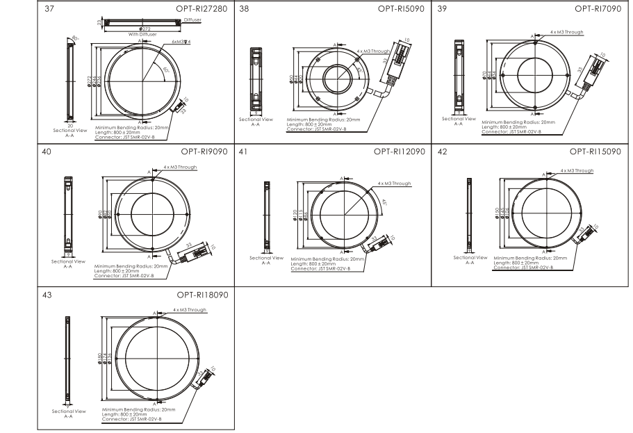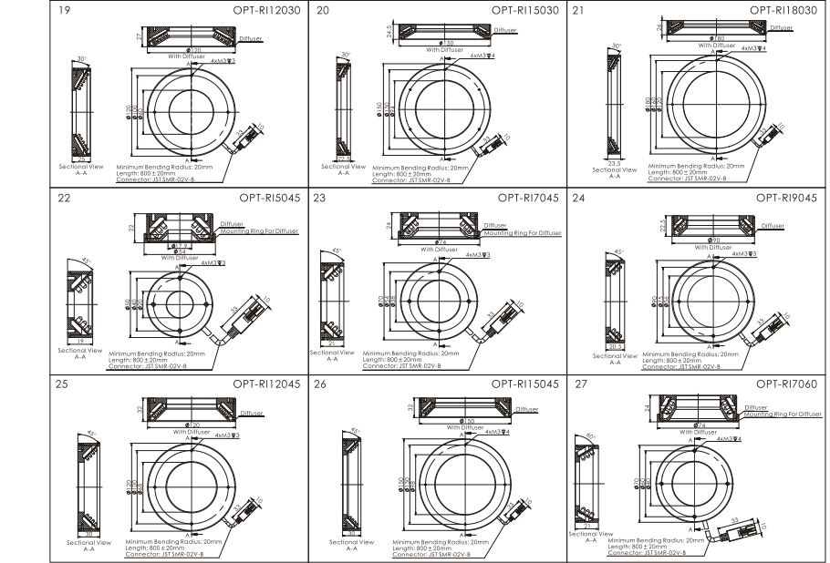 25度15 OPT-RI4225 24V/0.5W 24V/1.1W OPT-DPA1024E 16 OPT-RI5030 24V/0.5W 24V/1.6W OPT-DPA1024E 30度 17 OPT-RI7030 24V/1.5W 24V/2.9W OPT-DPA1024E 18 OPT-RI9030 24V/2.4W 24V/5.6W OPT-DPA1024E 19 OPT-RI12030 24V/5.3W 24V/10.6W OPT-DPA1024E 20 OPT-RI15030 24V/4.8W 24V/7.8W OPT-DPA1024E 21 OPT-RI18030 24V/10.6W 24V/18.8W OPT-DPA1024E 22 OPT-RI5045 24V/1.0W 24V/2.3W OPT-DPA1024E 45度 23 OPT-RI7045 24V/1.5W 24V/3.3W OPT-DPA1024E 24 OPT-RI9045 24V/1.8W 24V/4.6W OPT-DPA1024E 25 OPT-RI12045 24V/3.8W 24V/8.1W OPT-DPA1024E 26 OPT-RI15045 24V/4.6W 24V/12W OPT-DPA1024E 27 OPT-RI7060 24V/1.5W 24V/3.9W OPT-DPA1024E 60度 28 OPT-RI9060 24V/2.4W 24V/4.8W OPT-DPA1024E 29 OPT-RI12060 24V/4.6W 24V/10W OPT-DPA1024E 30 OPT-RI15060 24V/4.8W 24V/10.8W OPT-DPA1024E 31 OPT-RI18060 24V/6.0W 24V/12.8W OPT-DPA1024E 32 OPT-RI27270 24V/4.6W 24V/7.2W OPT-DPA1024E 70度 33 OPT-RI18075 24V/3.4W 24V/4.8W OPT-DPA1024E 75度 34 OPT-RI5080 24V/0.9W 24V/1.6W OPT-DPA1024E 80度 35 OPT-RI10080 24V/1.9W 24V/3.6W OPT-DPA1024E 36 OPT-RI12080 24V/5.2W 24V/8.7W OPT-DPA1024E 37 OPT-RI27280 24V/7.5W 24V/11.1W OPT-DPA1024E 38 OPT-RI5090 24V/0.5W 24V/0.8W OPT-DPA1024E 90度 39 OPT-RI7090 24V/0.6W 24V/1.4W OPT-DPA1024E 40 OPT-RI9090 24V/0.6W 24V/1.2W OPT-DPA1024E 41 OPT-RI12090 24V/1.8W 24V/2.2W OPT-DPA1024E 42 OPT-RI15090 24V/2.1W 24V/3.2W OPT-DPA1024E 43 OPT-RI18090 24V/1.8W 24V/3.8W OPT-DPA1024E -