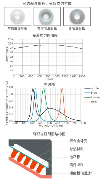 1.環形光源提供不同角度照射,能突出物體的三維信息有效解決對角照射陰影問題